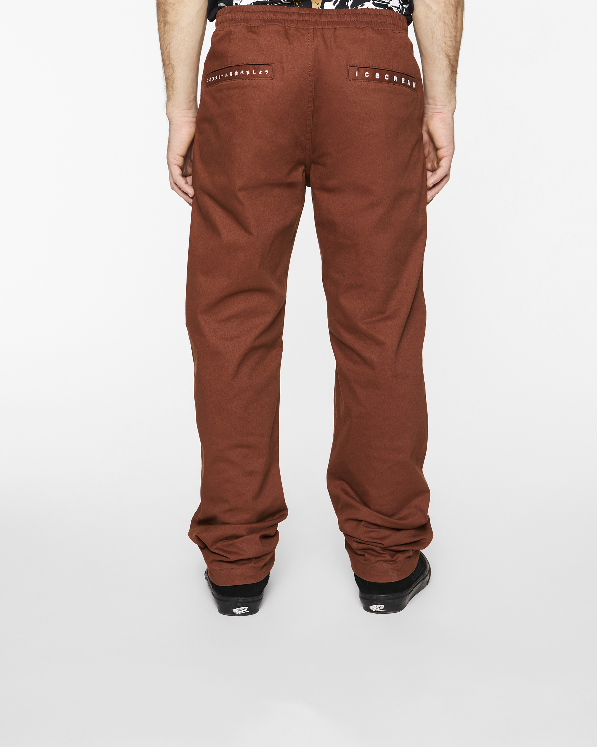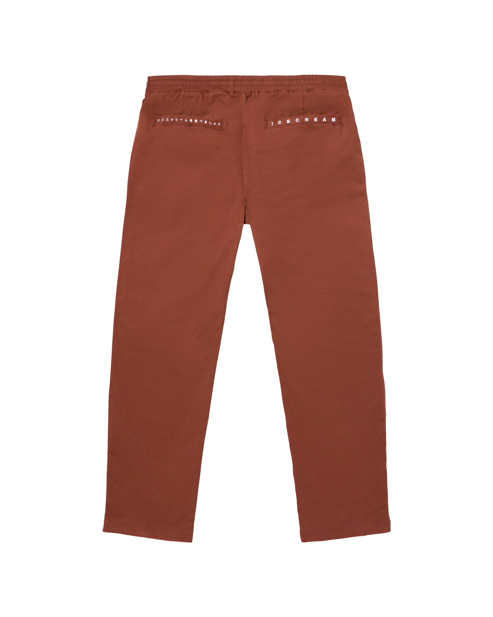 Pants featuring an adjustable waistband and Running Dog woven label.